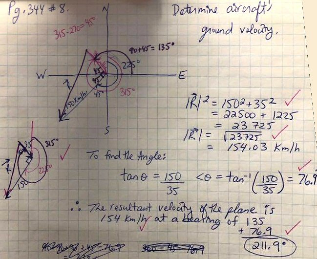 A recent question about the resultant velocity of an airplane illustrates different ways to make a diagram showing the bearings of air velocity and wind velocity, and to work out angles without getting too dizzy.