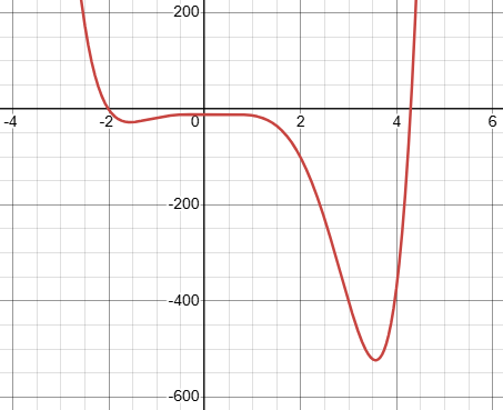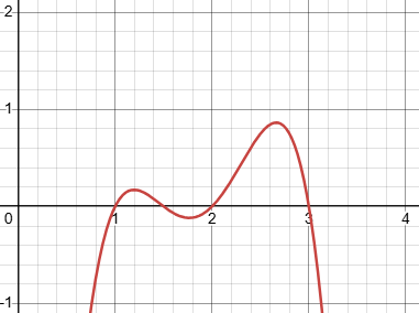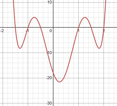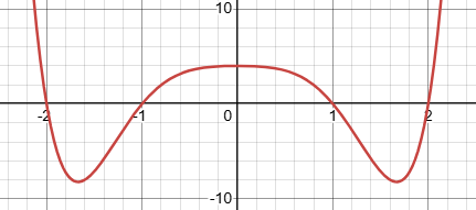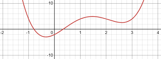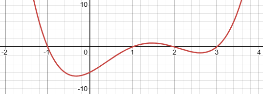 or 4 positive roots, like \(-2x^4+15x^3-40x^2+45x-18\):