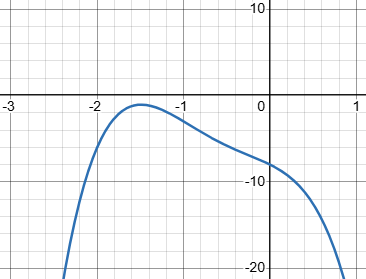 In this example, the pattern of signs is \(\left\langle+|- -|+\right\rangle\); note that we ignore zero coefficients (which have no sign). This gives either 2 or 0 possible positive roots, and since the function has even symmetry, it must also have 2 or 0 negative roots. This implies that it must have at least 2 non-real roots, as in fact it does.