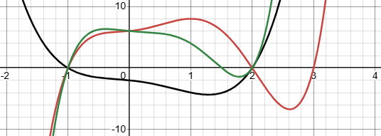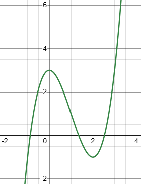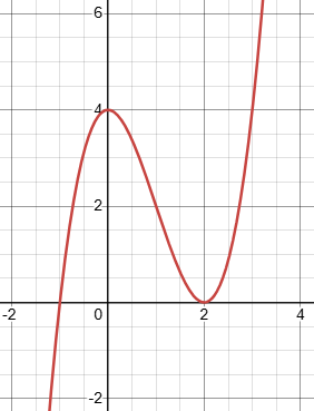 Here’s an example: The polynomial \((x-2)^2(x+1)=x^3-3x^2+4\) looks like this: