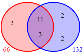 In our case, \(GCF=33=3\cdot11\) and \(LCM=264=2^3\cdot3\cdot11\), so we can place 3 and 11 in the middle, and have three 2’s left to place. We are told that A is 2 times the GCF, so we have to do this: